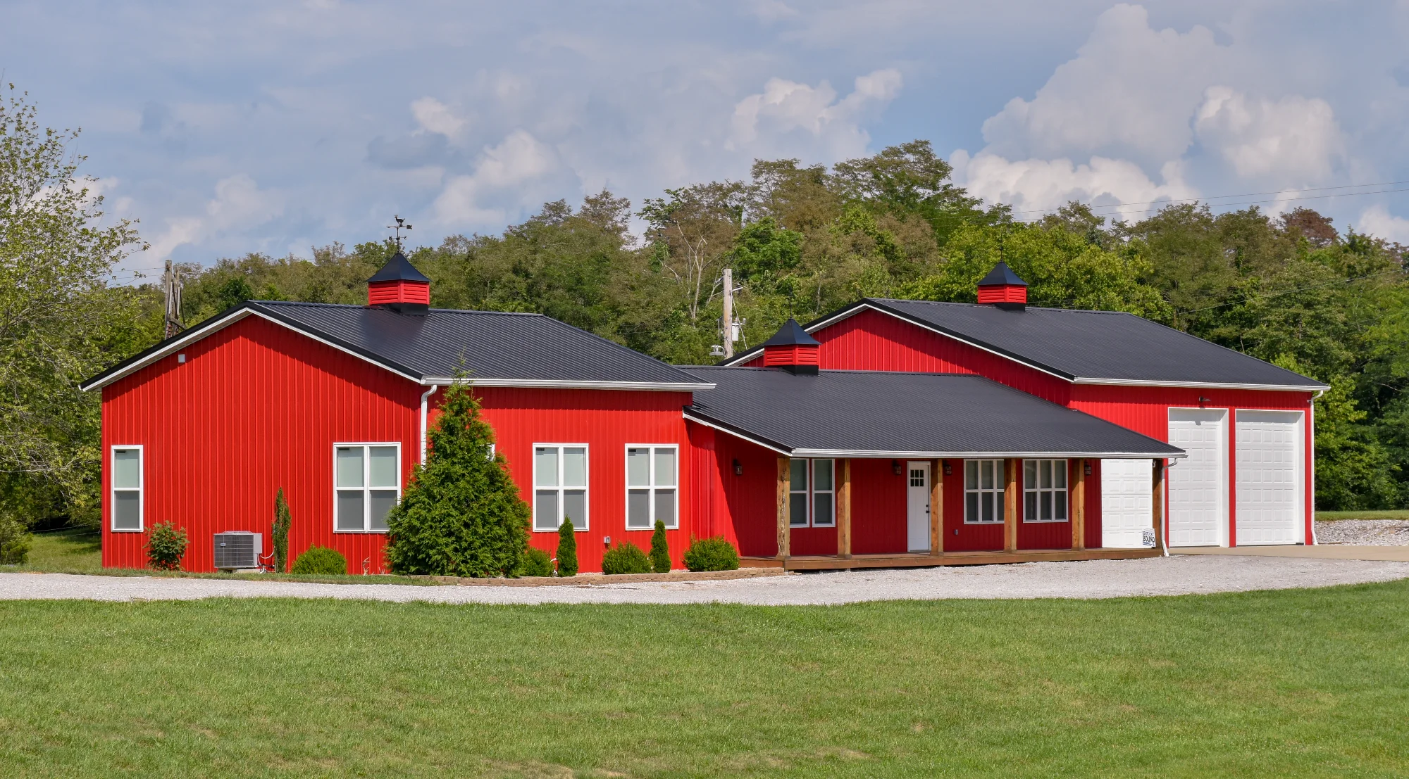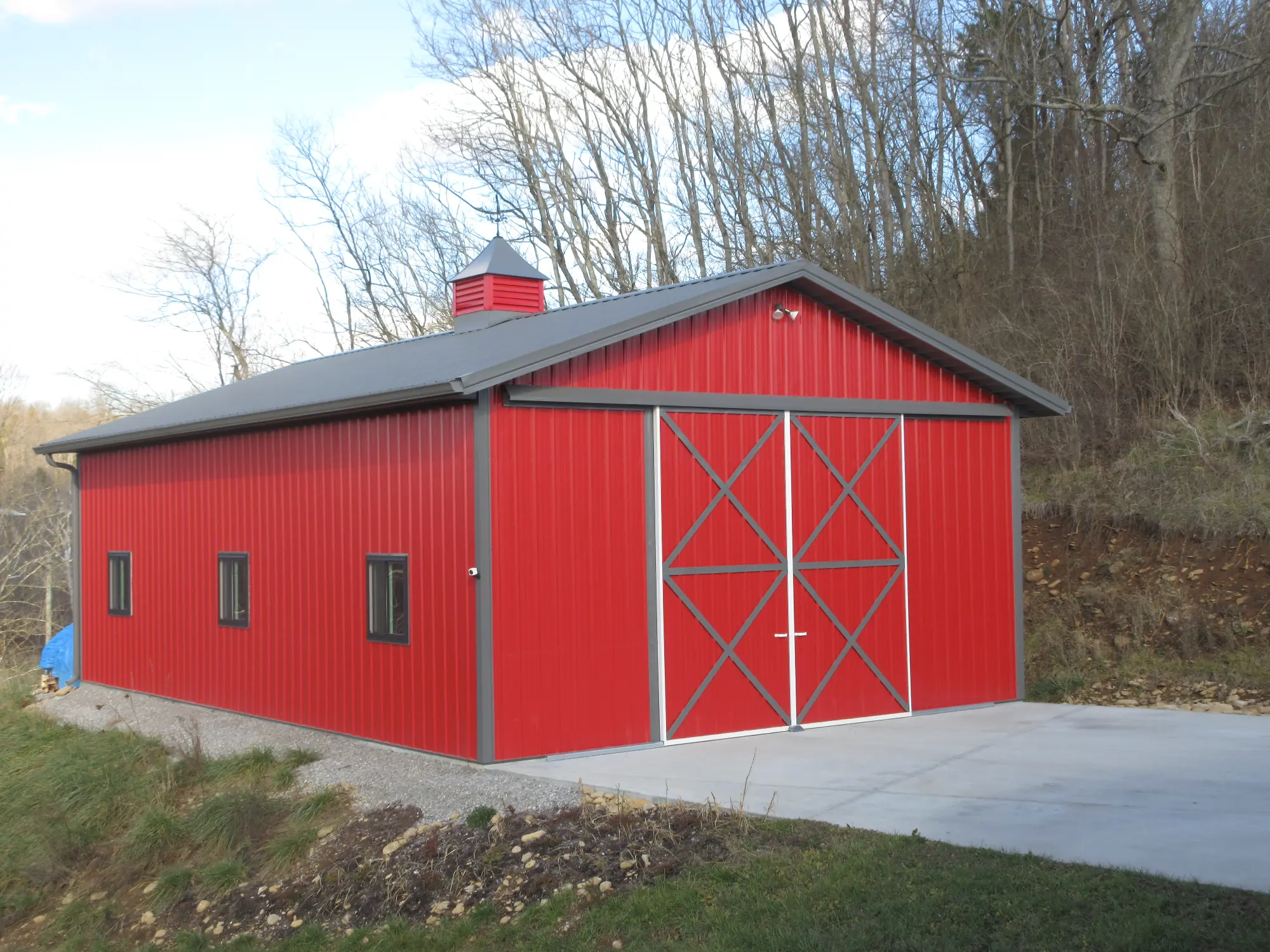 Roof Color: Charcoal; Siding Color: Crimson Red